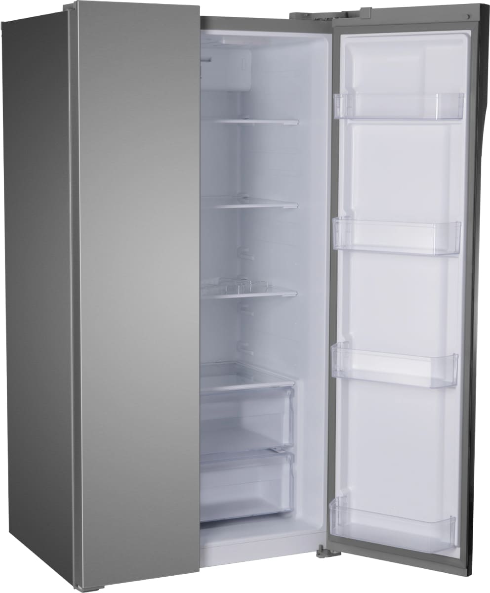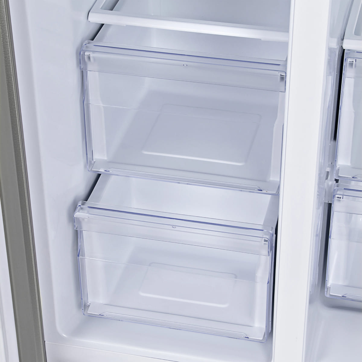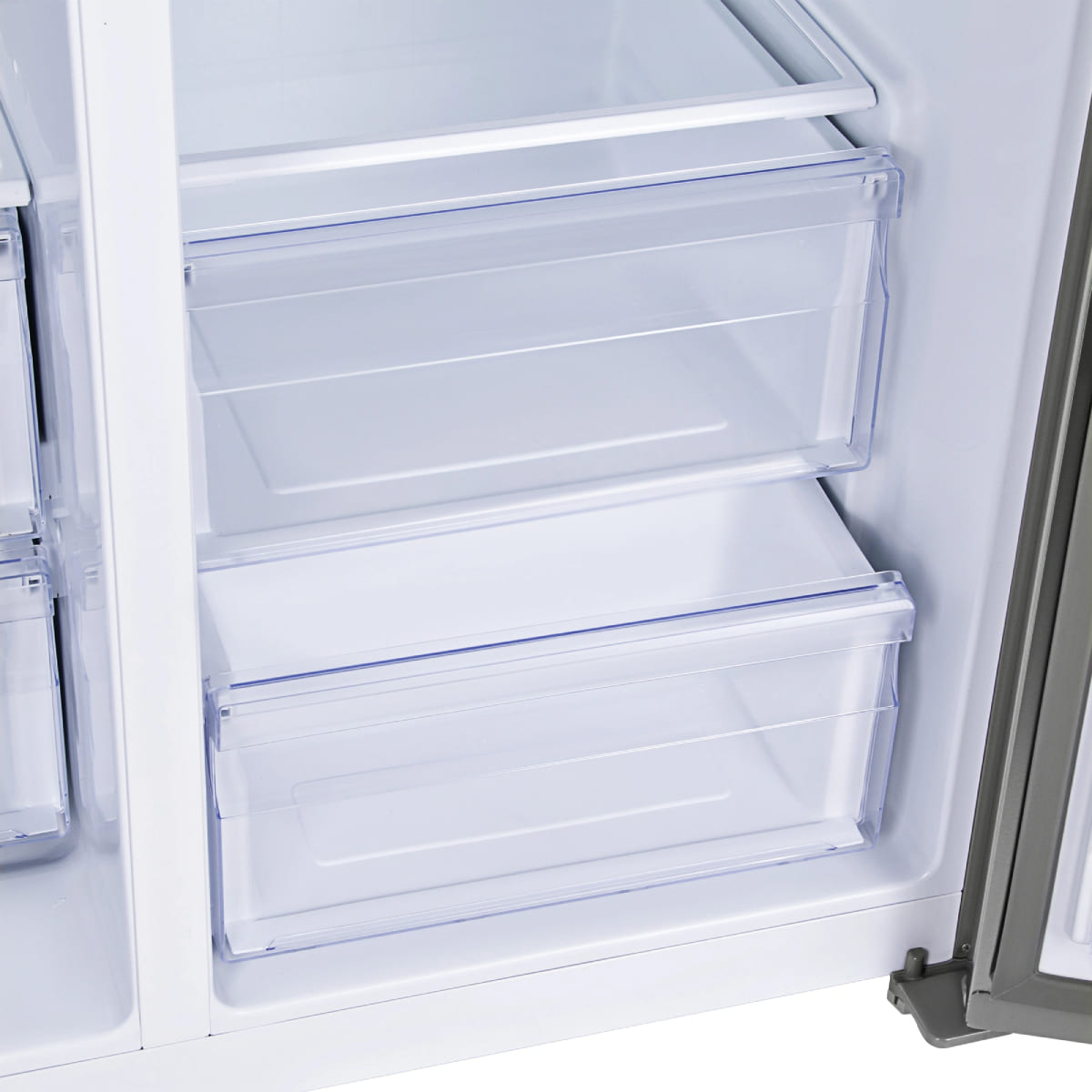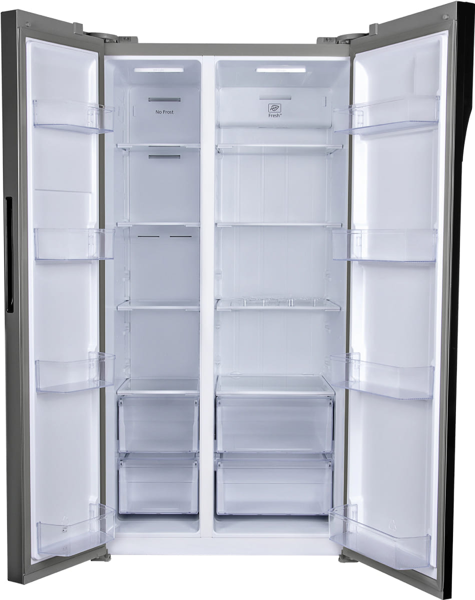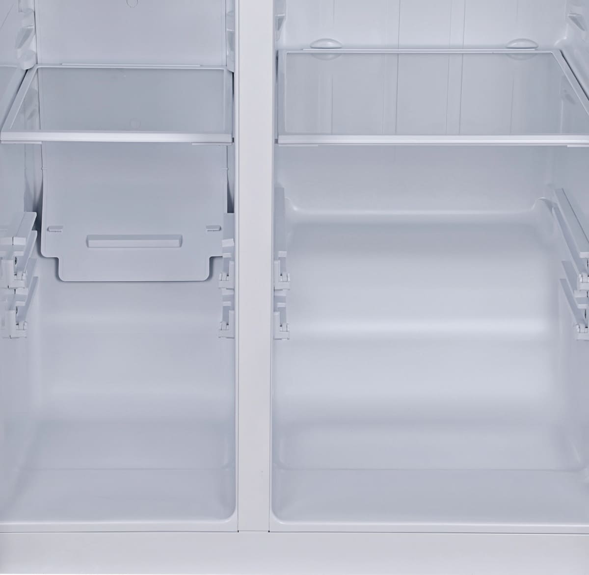 Данная модель — отдельностоящая, поэтому нужно тщательно подобрать место для ее размещения. Холодильник Side-by-Side с необычным расположением камер — сбоку друг от друга — позволяет увеличить объем продуктов для хранения. Такой вариант подходит обладателям просторной кухни, большим семьям, людям, которые запасают продукты и готовят впрок. Количество камер: 2.