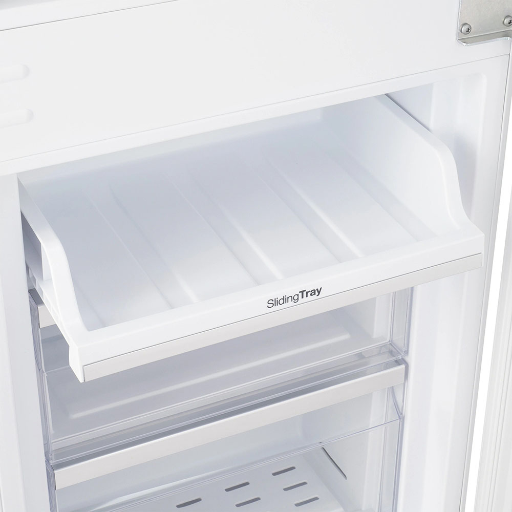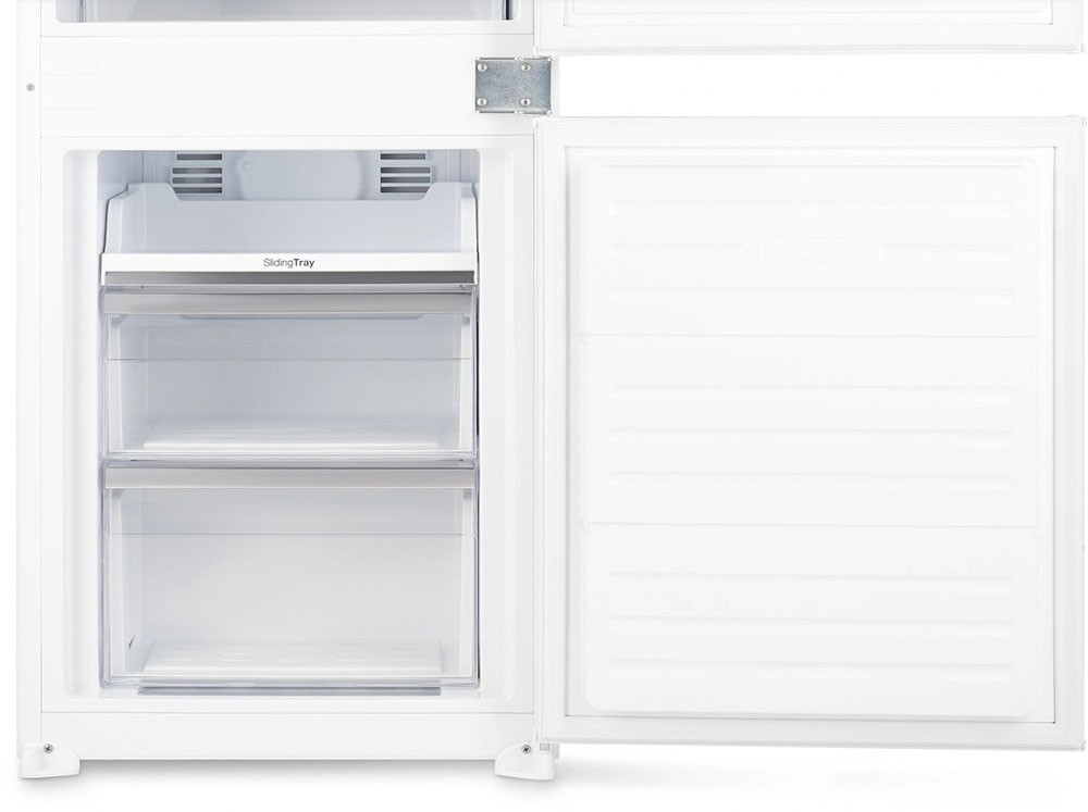 Встраиваемый прибор проще разместить в комнате, даже если общий метраж не такой уж большой. Вы можете спрятать его за декоративной панелью от мебельного фасада — советуем заранее определить нишу и заказывать панели исходя из типа крепления к двери. Вы можете поменять направление открывания двери, так как упор переставляемый и ее можно перевесить на другую сторону. Такая функция открывает больше возможностей для установки. Холодильник с морозильником обладает всеми опциями, которые чаще всего ищут и выбирают покупатели. Стандартная конфигурация — универсальный вариант для любой квартиры. Количество камер: 2.