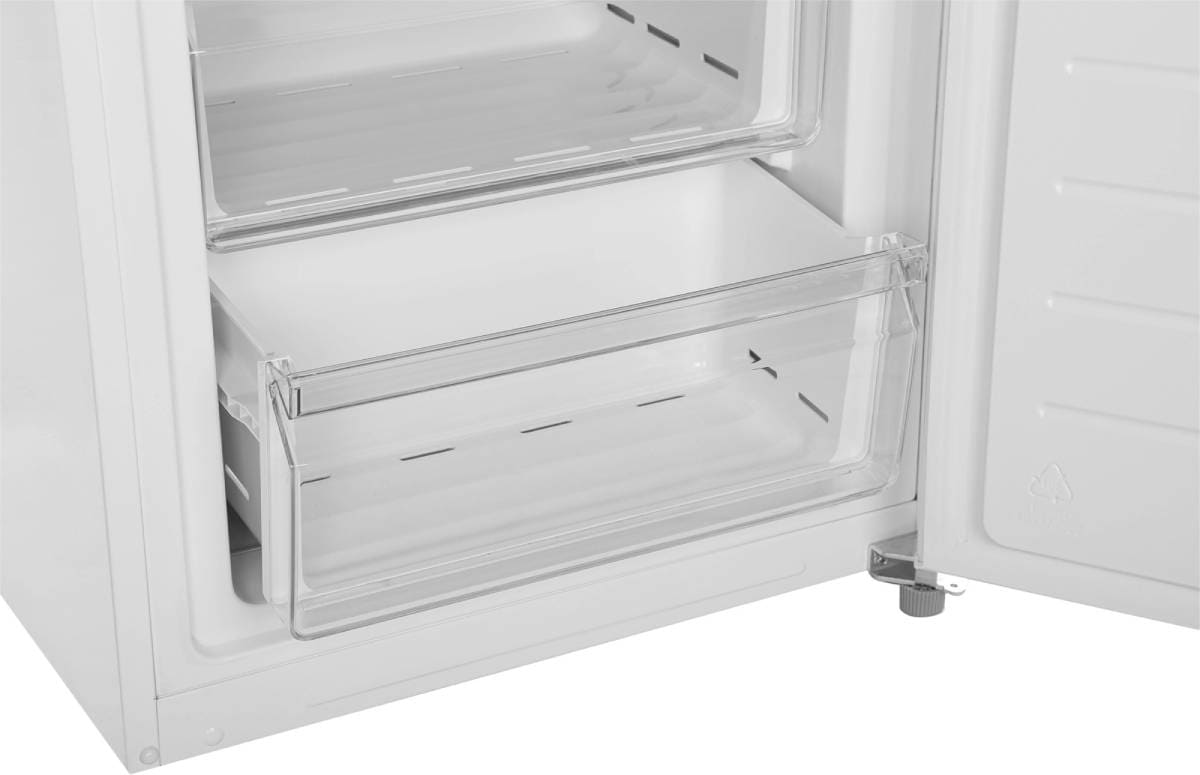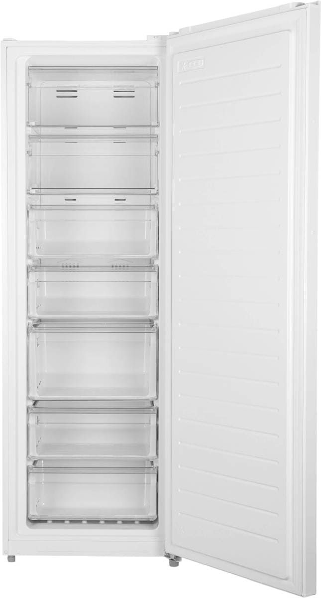 Данная модель — отдельностоящая, поэтому нужно тщательно подобрать место для ее размещения. Вы можете поменять направление открывания двери, так как упор переставляемый и ее можно перевесить на другую сторону. Такая функция открывает больше возможностей для установки. Отдельную морозильную камеру чаще всего выбирают для частного дома или дачи, для производства, когда актуально хранение большого объема замороженных продуктов. Советуем обратить внимание на этот вариант. Количество камер: 1.