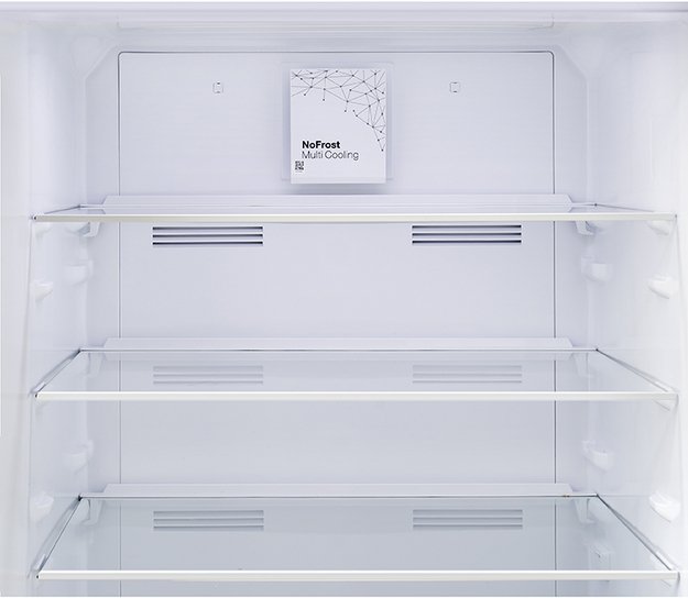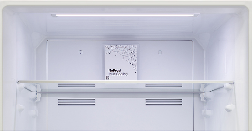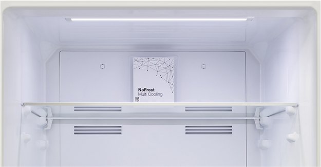 No Frost (Total No Frost, Frost Free): вентилятор обеспечивает циркуляцию охлажденного воздуха, благодаря чему лед не нарастает на стенке, а концентрируется только на скрытом внутри холодильника испарителе. Талая вода собирается в специальной емкости и испаряется. Такой холодильник не нужно размораживать – это экономит время и позволяет не останавливать прибор. Благодаря этим плюсам в современных моделях No Frost – самая распространенная система.