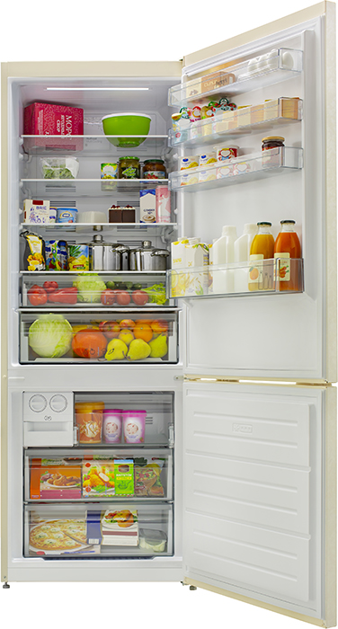 Внутреннее освещение холодильной камеры позволяет обеспечить хороший обзор содержимого и быстро найти необходимые продукты. Чем меньше времени будет открыта дверца холодильника, тем лучше будет поддерживаться в камере выбранная температура, следовательно, улучшится и качество хранения продуктов.