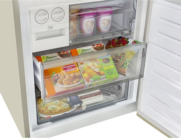 Трехкамерные модели выпускаются в нескольких вариантах. В некоторых случаях в качестве третьей камеры поступает так называемая зона свежести — отделение, где поддерживается температура около 0 градусов. В другом варианте подобные модели имеют морозильную камеру, состоящую из двух выдвижных ящиков.