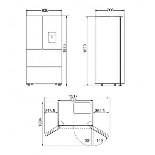 Наиболее разнообразны по ширине большие модели холодильников с распашными дверями типа Side-by-Side или модели с так называемыми французскими дверями. Ширина этих устройств может варьироваться в диапазоне от 80 до 160 см: многие из них представляют собой полноценный холодильник и морозильную камеру, расположенные рядом друг с другом. Несколько реже встречаются отдельностоящие холодильники нестандартной ширины от 70 до 90 см с верхней или нижней морозильной камерой — в основном это так называемые азиатские модели с морозильником сверху.