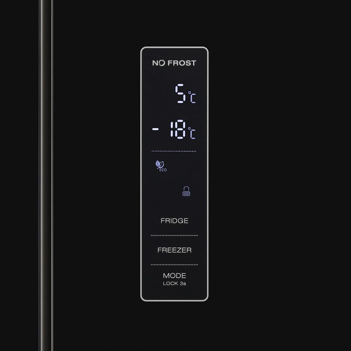 Гораздо точнее сориентироваться по индикаторам можно в холодильниках с электронной системой управления. Эти устройства обычно оснащены дисплеем, на котором высвечиваются значения фактической температуры в холодильной и морозильной камерах. Рядом с ними располагаются кнопки, во многих случаях сенсорные, при помощи которых можно регулировать температуру в каждой камере отдельно, и индикаторы включения этих камер. Здесь же, на панели инструментов, находятся индикаторы, указывающие на активацию дополнительных опций — например, режимов быстрого замораживания и быстрого охлаждения, отпускного режима, блокировки панели управления от детей.