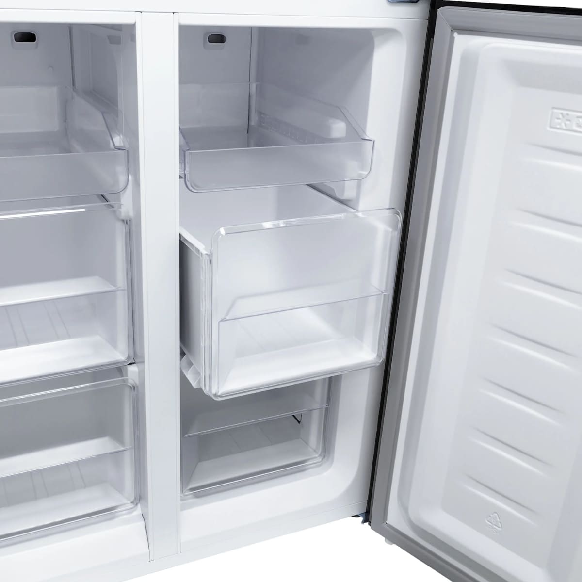 Трехкамерные модели выпускаются в нескольких вариантах. В некоторых случаях в качестве третьей камеры поступает так называемая зона свежести — отделение, где поддерживается температура около 0 градусов. В другом варианте подобные модели имеют морозильную камеру, состоящую из двух выдвижных ящиков.