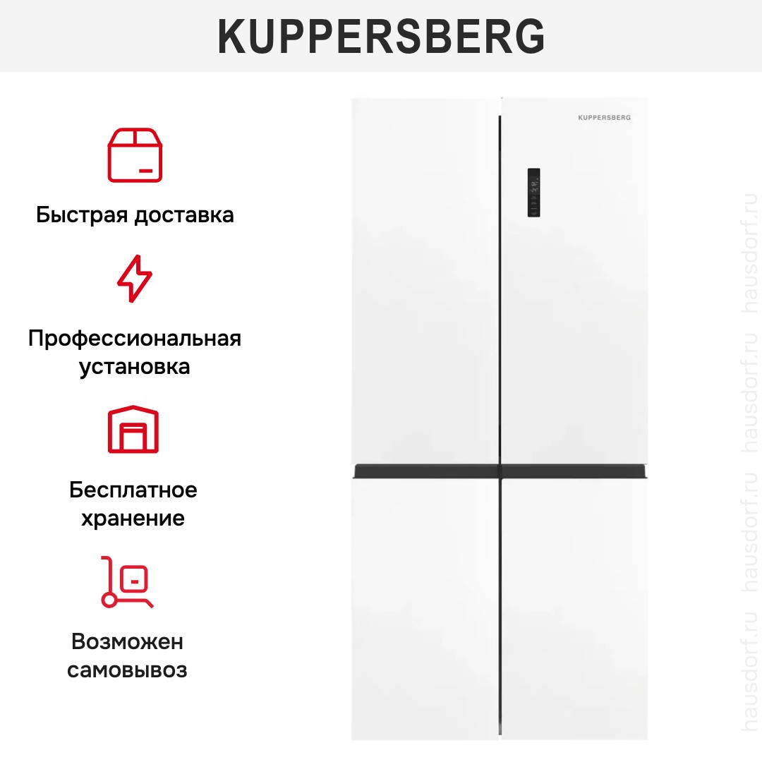 Холодильник Kuppersberg NFFD 186 WG представляет собой продуманное сочетание элегантного современного оформления и продвинутых технических решений, способных обеспечить долгую сохранность продуктов и комфорт в повседневном использовании. Эстетика корпуса в белом исполнении и глянцевый стеклянный фронт делают устройство вписывающимся в разные интерьеры, при этом строгие геометрические линии габаритов 182.2×83×64.7 см подчеркивают солидность и статусность кухни. Конструкция с нижней морозильной камерой и практичным распределением четырех дверей обеспечивает удобный доступ к свежим продуктам без лишней траты пространства, а система открывания Side-by-Side делает эксплуатацию плавной и эргономичной. Внутреннее пространство рассчитано на общий полезный объем 475 л: просторная холодильная зона вместимостью 303 л организована тремя стеклянными полками, две из которых регулируемые, и четырьмя отсеками на двери, включая лоток для яиц, что облегчает систематизацию запасов. Зона свежести с двумя контейнерами предназначена для хранения овощей, фруктов и деликатных продуктов при оптимальной влажности и температуре, а функция суперохлаждения оперативно понижает температуру при загрузке большого количества товаров. Морозильная секция объемом 172 л оборудована двумя полками и четырьмя выдвижными ящиками для удобного разделения продуктов по категориям; наличие лотка для приготовления кубиков льда и опции суперзамораживания делает её универсальной для бытовых нужд, а показатель производительности замораживания 8 кг/сутки свидетельствует о надежности при активной эксплуатации. Оба отделения работают по технологии No Frost, что исключает образование наледи и снижает необходимость ручного размораживания, обеспечивая стабильность параметров хранения. Управление полностью электронное: сенсорные кнопки и цифровой дисплей позволяют точно регулировать температуру в диапазоне от −15°C до −24°C в морозильнике и легко контролировать режимы, при этом предусмотрена функция индикации открытой двери со звуковым сигналом и защита от детей для безопасной эксплуатации в семье. Инверторный компрессор на базе одного компрессорного блока гарантирует экономичное энергопотребление класса A++, уменьшенный уровень шума до 41 дБ и надежную работу в широком диапазоне условий, что подтверждается климатическим классом ST. Циркуляционная система охлаждения обеспечивает равномерное распределение холодного воздуха по полкам, а светодиочная подсветка внутри холодильной камеры делает обзор содержимого комфортным и энергосберегающим. Практичные детали, такие как регулируемые ножки для точной установки по уровню пола, возможность тонкой регулировки температурных режимов и инертный хладагент R600a, дополняют картину современной бытовой техники, ориентированной на долговечность и удобство повседневного использования, что делает этот агрегат привлекательным выбором для семей, ценящих вместительность, технологичность и лаконичный дизайн.