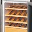 Дверца винного шкафа обычно делается прозрачной, защищенной от ультрафиолета, который может отрицательно повлиять на качество вина. Дополнительная защита позволяет снизить до минимума уровень вибрации. Кроме температуры, в такое деление можно регулировать уровень влажности. Деревянные полки служат для хранения бутылок в горизонтальном положении и могут выдвигаться на телескопических направляющих.