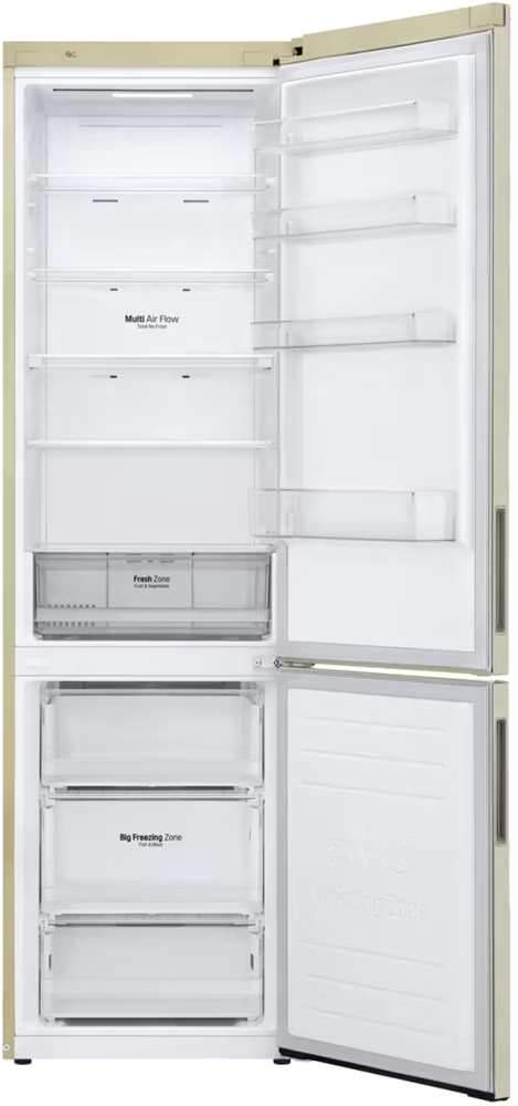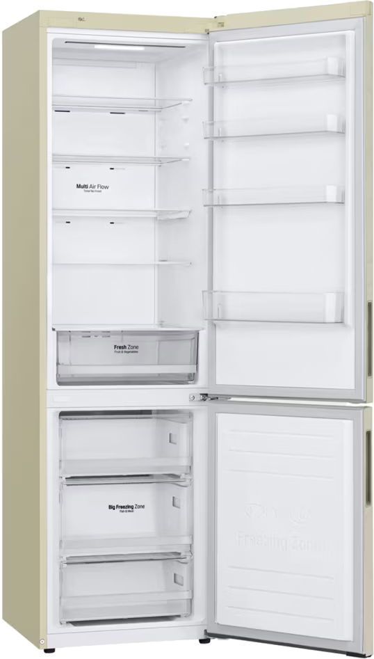 Холодильник с морозильником LG GA-B509CESL — высокий двухкамерный агрегат в бежевом корпусе с металлическим фронтом и скрытой ручкой, который выглядит лаконично и стильно в любой кухне. Его габариты 203×59.5×68.2 см дают большую вместимость, при этом прибор не выглядит громоздко. Возможность перевешивания дверей обеспечивает гибкость при расстановке мебели.