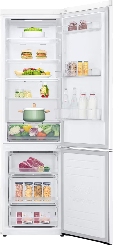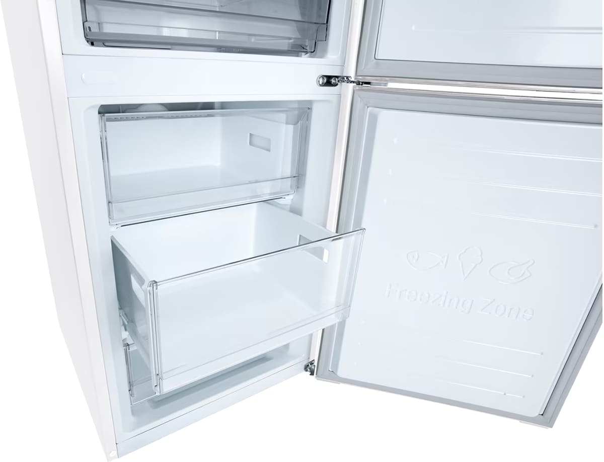 Внутреннее пространство спроектировано для максимального удобства хранения. Общий объем 419 литров и полезный объем 365 литров предоставляют место для распределения больших объемов продуктов. Холодильная камера имеет 277 литров полезного объема. Здесь предусмотрены пять стеклянных полок, нижняя зона включает большой ящик для овощей и фруктов. Морозильное отделение снизу предлагает 88 литров полезного объема.