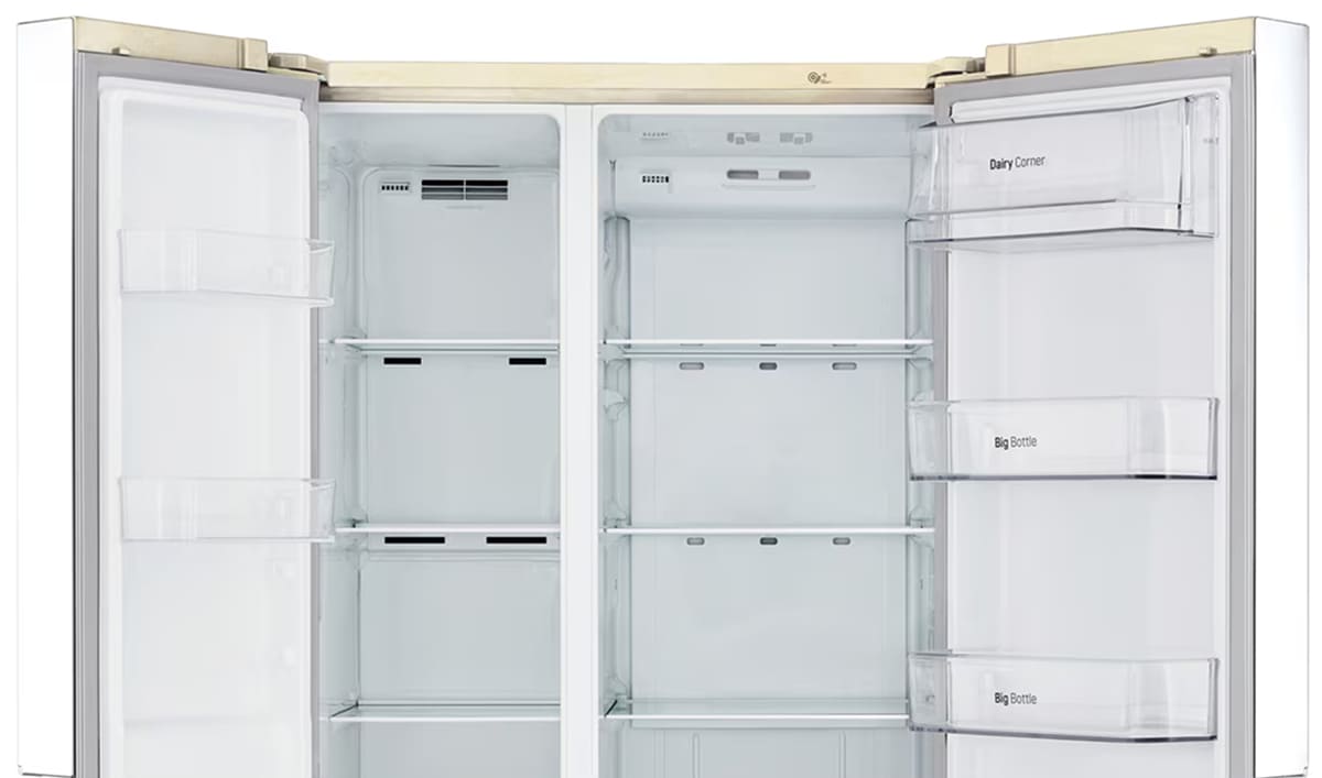Данная модель — отдельностоящая, поэтому нужно тщательно подобрать место для ее размещения. Холодильник Side-by-Side с необычным расположением камер — сбоку друг от друга — позволяет увеличить объем продуктов для хранения. Такой вариант подходит обладателям просторной кухни, большим семьям, людям, которые запасают продукты и готовят впрок. Количество камер: 2.