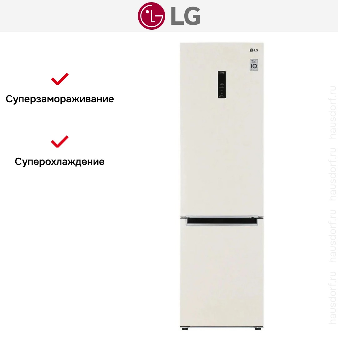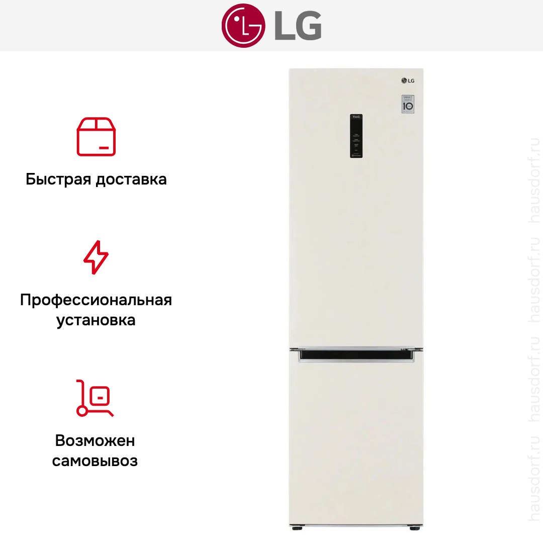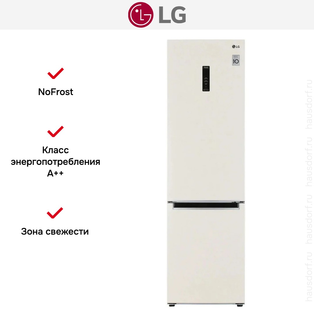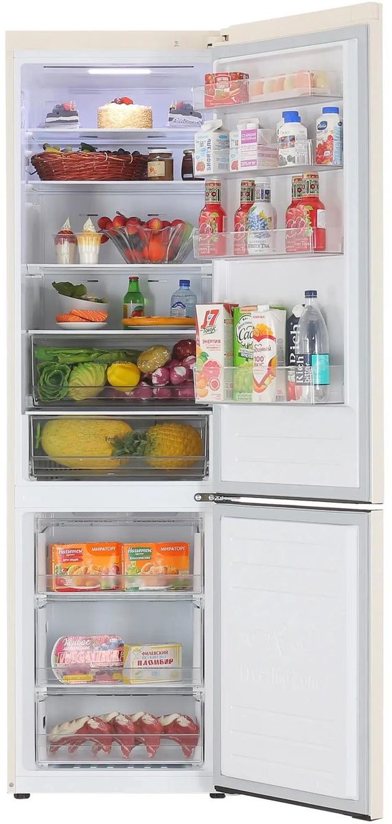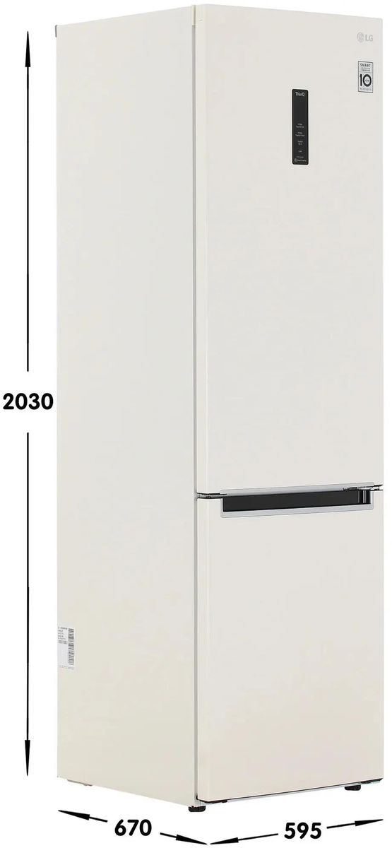 Холодильник LG GC-B509MEWM — отдельно стоящий двухкамерный прибор с морозильной камерой внизу и внушительным общим объёмом 419 литров. Он сочетает утончённый бежевый металлический фронт и скрытую ручку, что делает внешний вид сдержанным и современным. Формат 203×59.5×68.2 см подходит как для просторной кухни, так и не слишком большой по площади.