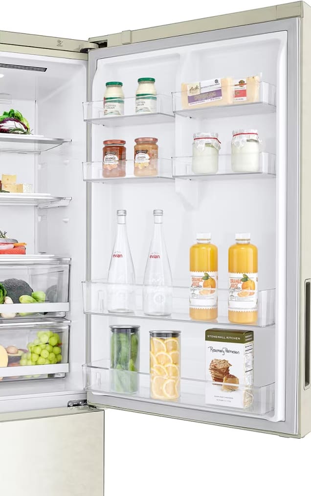 Внутреннее наполнение холодильной и морозильной камер включает многочисленные и разнообразные полки, ящики, контейнеры. Все они используются для более удобного и рационального размещения продуктов, которое обеспечивает хороший обзор содержимого холодильника и быстрый поиск.