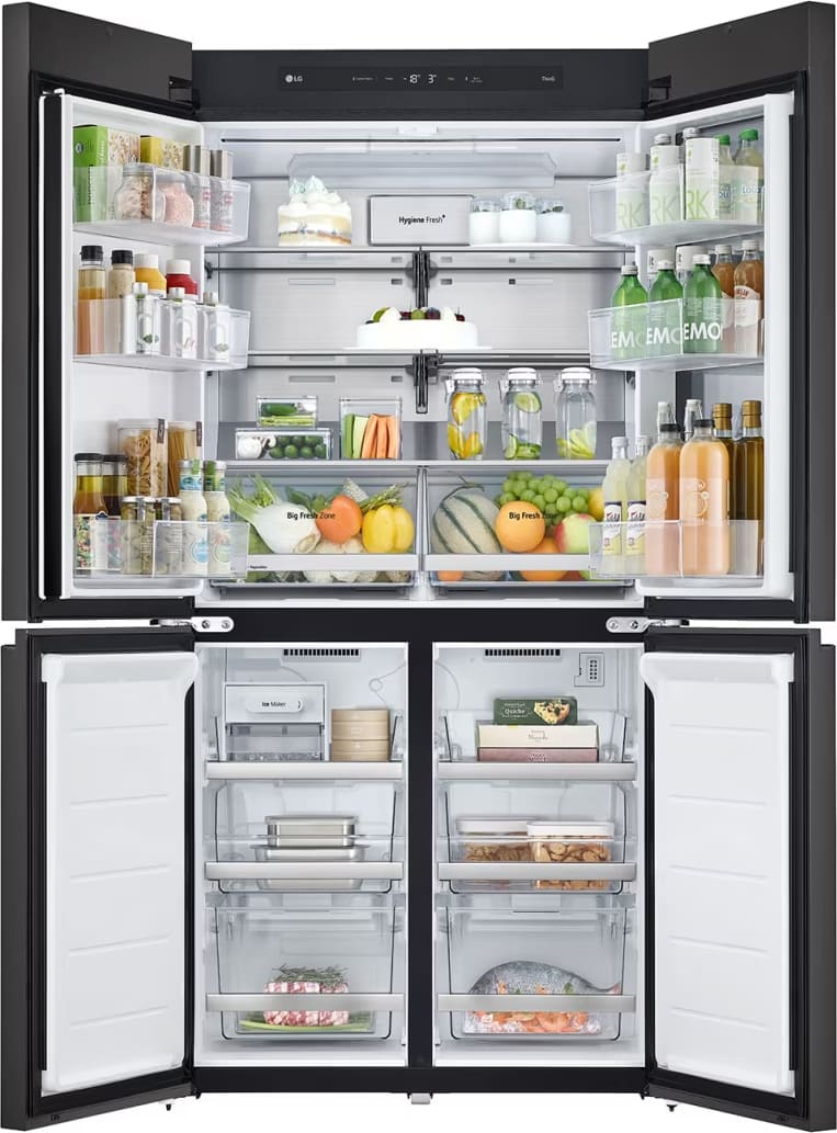 Четырех-, пяти- и шестикамерные модели включают, кроме морозильной и холодильной камер, отдельную зону свежести (иногда состоящую из сухого и влажного отсеков) и специальный отсек для ледогенератора, а в некоторых случаях еще и винное отделение.