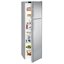Холодильник Liebherr CTNesf 3663 — отдельно стоящий прибор в корпусе серебристого цвета с двумя дверцами и верхним расположением морозильной камеры. Стальной корпус с покрытием SmartSteel от отпечатков пальцев достигает в высоту 191 см, общий объем составляет 257 литров. Перенавешиваемая дверца и регулируемые ножки позволят без труда установить прибор в выбранном месте. Автоматическое размораживание обеих камер без образования льда на стенках позволяет облегчить уход за прибором. Большая информативная панель управления MagicEye класса Premium расположена за дверцей. Внутреннее наполнение холодильной камеры составляют полки из закаленного стекла с регулировкой по высоте, металлическая подвесная полка для бутылок, ящики для овощей и фруктов. В морозильнике продукты размещаются на двух полках. Производительность замораживания достигает 8 кг в сутки. Система суперзамораживания SuperFrost понизит температуру перед закладкой на хранение новой порции продуктов. Внутреннее освещение холодильной камеры осуществляется при помощи светодиодных колонн.