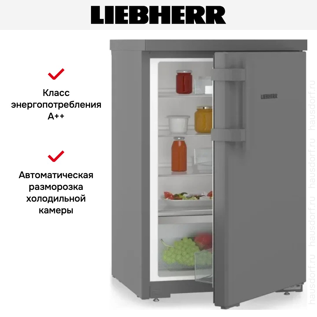 Холодильник Liebherr RDGD 1400 Pure — компактный однокамерный прибор, который сочетает продуманный внешний вид, практичность и надежность. Его темно-серый цвет и стальной корпус придают внешнему виду строгость и стиль. Встроенная ручка со скрытым толкателем сохраняет гладкость фасада и упрощает открывание дверцы.