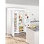 Встраиваемые холодильники монтируются в нишу или колонну. Передняя их часть закрывается декоративным мебельным фасадом и снаружи не отличается от дверцы обычного кухонного шкафа, так что их не нужно подбирать под интерьер помещения. Объем этих холодильников, как правило, несколько меньше, чем у отдельностоящих, так как при встраивании необходимо оставлять свободное пространство для вентиляции. Они отличаются меньшим уровнем шума, а также лучше держат холод и отличаются большей экономичностью из-за дополнительного слоя изоляции. Ассортимент этих холодильников не так велик, как у отдельно стоящих, установка более трудоемкая, а стоимость обычно несколько выше.