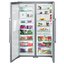 В числе подобных устройств имеются как отдельностоящие, так и встраиваемые модели: в любом случае они требуют много места для установки и могут быть размещены в просторном помещении. Преимуществом подобных устройств является прежде всего их вместительность, отличный обзор обеих камер, удобство использования, два контура охлаждения и возможность точной раздельной регулировки температуры. Кроме того, модели Side-by-Side преимущественно относятся к премиум-классу — имеют стильный внешний вид и большой набор дополнительных возможностей. Система размораживания подобных устройств — No Frost или капельная, — позволяет свести уход за прибором к минимуму.