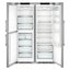 Liebherr SBSes 8483 — холодильник Side-by-side объемом 688 л. Отдельно стоящая модель шириной 121 см предназначается для просторных помещений. Фасад из нержавеющей стали и боковые стороны из легированной стали имеют защиту от отпечатков пальцев SmartSteel. Двери оборудованы встроенным механизмом открывания и доводчиком. Модель допускает установку вплотную к стене.