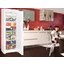 Встраиваемые холодильники монтируются в нишу или колонну. Передняя их часть закрывается декоративным мебельным фасадом и снаружи не отличается от дверцы обычного кухонного шкафа, так что их не нужно подбирать под интерьер помещения. Объем этих холодильников, как правило, несколько меньше, чем у отдельностоящих, так как при встраивании необходимо оставлять свободное пространство для вентиляции. Они отличаются меньшим уровнем шума, а также лучше держат холод и отличаются большей экономичностью из-за дополнительного слоя изоляции. Ассортимент этих холодильников не так велик, как у отдельно стоящих, установка более трудоемкая, а стоимость обычно несколько выше.