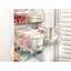 В холодильной камере для этого используются дополнительные навесные аксессуары — например, полки и балконы различной высоты на дверце. В самой камере стеклянные полки можно перемещать по высоте, а снизу к любой полке можно подвешивать дополнительные решетчатые держатели для бутылок или пластиковые выдвижные контейнеры для хранения яиц или мелких упаковок. Ящики для овощей и фруктов могут быть разделены на отдельные зоны с помощью встроенного ограничителя.