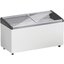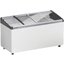 Ларь снабжен верхней откидной крышкой, позволяющей поддерживать во внутренней камере низкую температуру. Крышка может быть как глухой, изготовленной из металла, как и весь корпус, так и прозрачной стеклянной. Подобная конструкция требует достаточно много свободного места для установки, однако может быть размещена в подсобном помещении, а не на виду.