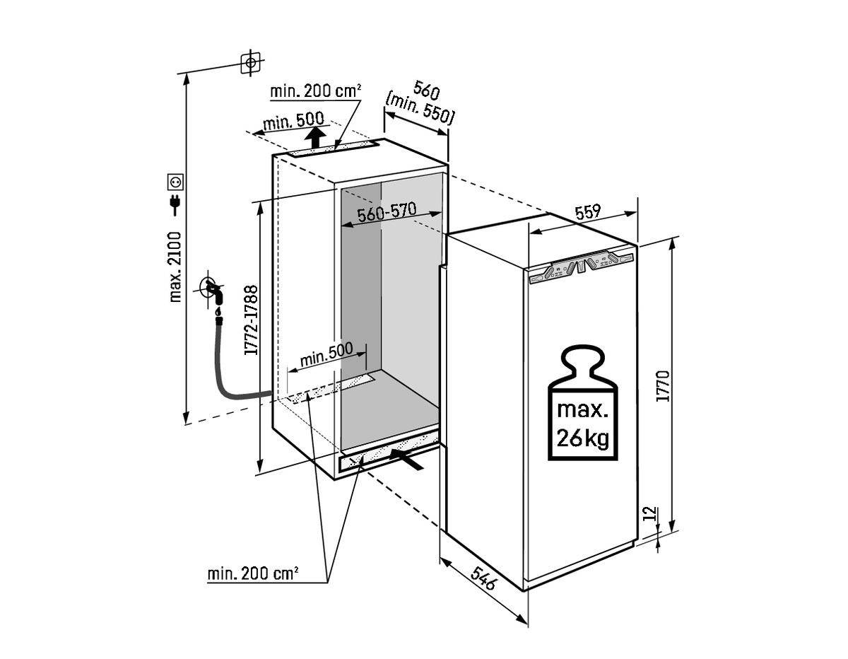 - Габариты ниши для встраивания (ВхШхГ): 177.7-179.3х57х55 см
