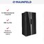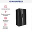 Maunfeld MFF177NFB — отдельно стоящий холодильник Side-by-Side высотой 177 см и шириной 92 см с морозильной камерой слева. Общий объем его составляет 592 литра, на морозильную камеру из них приходится 203 литра. Боковые стенки изготовлены из металла, а фронтальная часть — из прочного и удобного в очистке закаленного стекла эффектного черного цвета. Внутренние стенка камер выполнены из белого пластика с нанесенным на него антибактериальным покрытием, защищающим содержимое холодильника от болезнетворных микробов. Модель оснащена специальной системой LECO, которая помогает сохранить продукты свежими и предотвращает появление неприятного запаха.