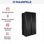 Maunfeld MFF177NFSB — отдельно стоящий холодильник Side-by-Side высотой 177 см и шириной 92 см с морозильной камерой слева. Общий объем холодильника составляет 592 литра, объем морозильника достигает 203 литров. Корпус стильного черного цвета целиком изготовлен из металла. На стенки камер изнутри нанесено антибактериальное покрытие, предохраняющее продукты от плесени. Современная система LECO способствует сохранению свежести продуктов и не допускает смешивания запахов. Холодильник оснащен системой NoFrost, которая исключает образование наледи на стенках. Инверторный компрессор отличает небольшое потребление электроэнергии, соответствующее классу А++, и невысокий уровень шума, не превышающий 42 дБ. Климатический класс SN-N-ST-T допускает использование этого холодильника при температуре окружающей среды от +10 до +43 градусов, так что его можно размещать в том числе в подсобном помещении.