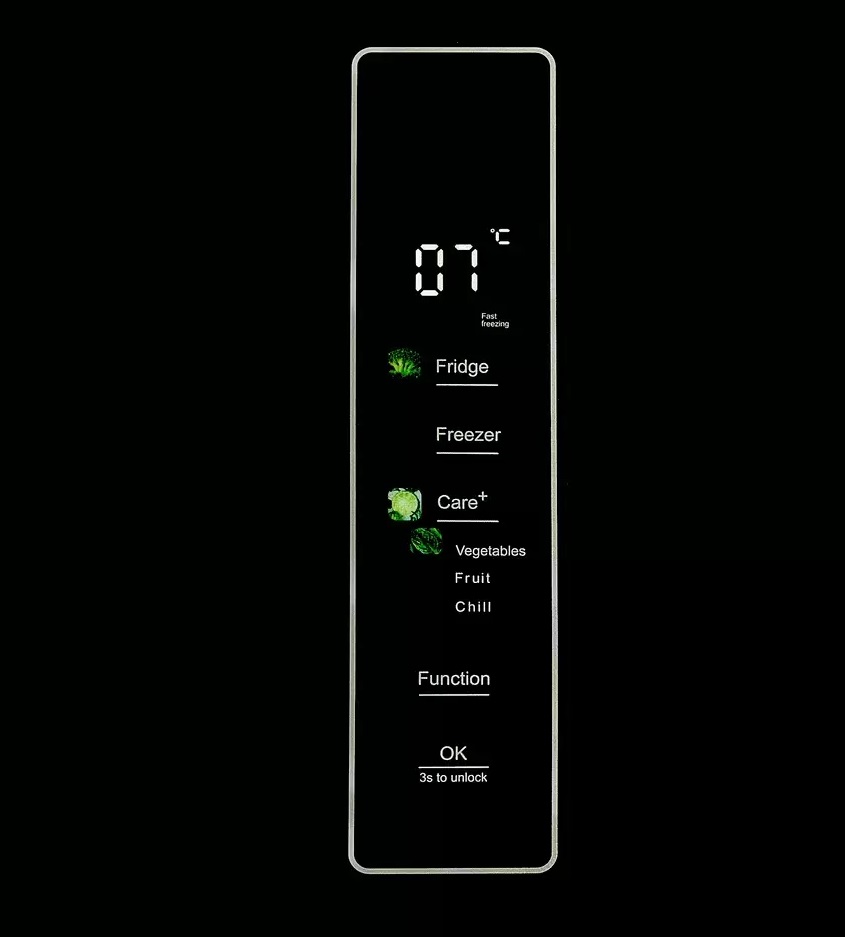 Система управления холодильником позволяет самостоятельно выбирать температуру охлаждения каждой камеры, задавать дополнительные параметры, контролировать работу прибора. П