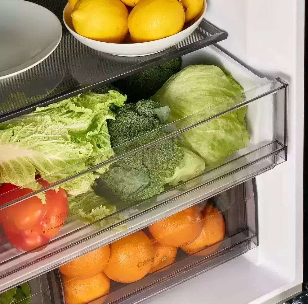 Ящики для овощей и фруктов можно найти в любой холодильной камере, какого размера ни был бы ваш холодильник — от большого устройства Side-by-Side до стандартной двухкамерной модели. В простейшем варианте они представляют собой обычные выдвижные ящики из пластика в нижней части камеры.