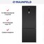 Maunfeld MFF1857NFSB — большое отдельно стоящее двухкамерное устройство высотой 185 см и шириной 70 см с нижним расположением морозильной камеры. Холодильник черного цвета с электронной панелью управления и дисплеем на дверце очень вместителен — общий полезный объем составляет 432 литра. Корпус целиком изготовлен из металла, дверной упор находится с правой стороны, но при необходимости может быть перенесен налево. Внутри камера покрыта антибактериальным составом и защищена от неприятных запахов. Система многопоточного охлаждения Multi Air Flow позволяет распределить струи холодного воздуха по всему пространству обеих камер так, что воздух там не застаивается, а температура выравнивается.