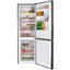 В холодильной камере находятся три полки из закаленного стекла с металлической рамкой, два ящика для овощей и фруктов, подвесная металлическая полка для бутылок и зона свежести с регулировкой влажности. В морозильной камере продукты хранятся в трех вместительных выдвижных ящиках из прозрачного пластика.