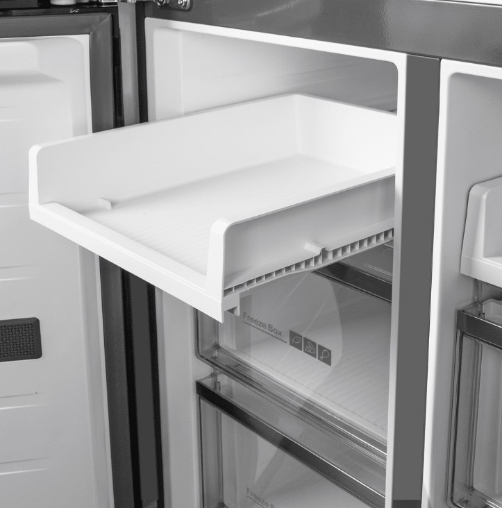 Очень редко в холодильниках можно увидеть откидную дверцу — она имеется, например, в отсеке для вакуумирования в холодильниках Hitachi.