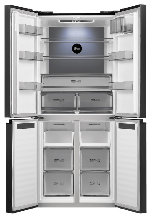 Четырех-, пяти- и шестикамерные модели включают, кроме морозильной и холодильной камер, отдельную зону свежести (иногда состоящую из сухого и влажного отсеков) и специальный отсек для ледогенератора, а в некоторых случаях еще и винное отделение.