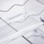 Прозрачный безопасный пластик позволяет сразу определить содержимое бутылки, если же пластиковый бортик имеет белый цвет, то между ним и металлической полосой остается достаточное расстояние, чтобы прочитать этикетку. Для еще более устойчивого размещения полки оснащаются разделителями-держателями.
