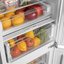 Продукты в холодильной камере размещаются на трех полках из закаленного стекла с регулировкой по высоте. Под ними расположена зона свежести для хранения продуктов без замораживания, а ниже — прозрачный ящик для фруктов и овощей. Для размещения продуктов в морозильной камере имеются три прозрачных пластиковых контейнера.