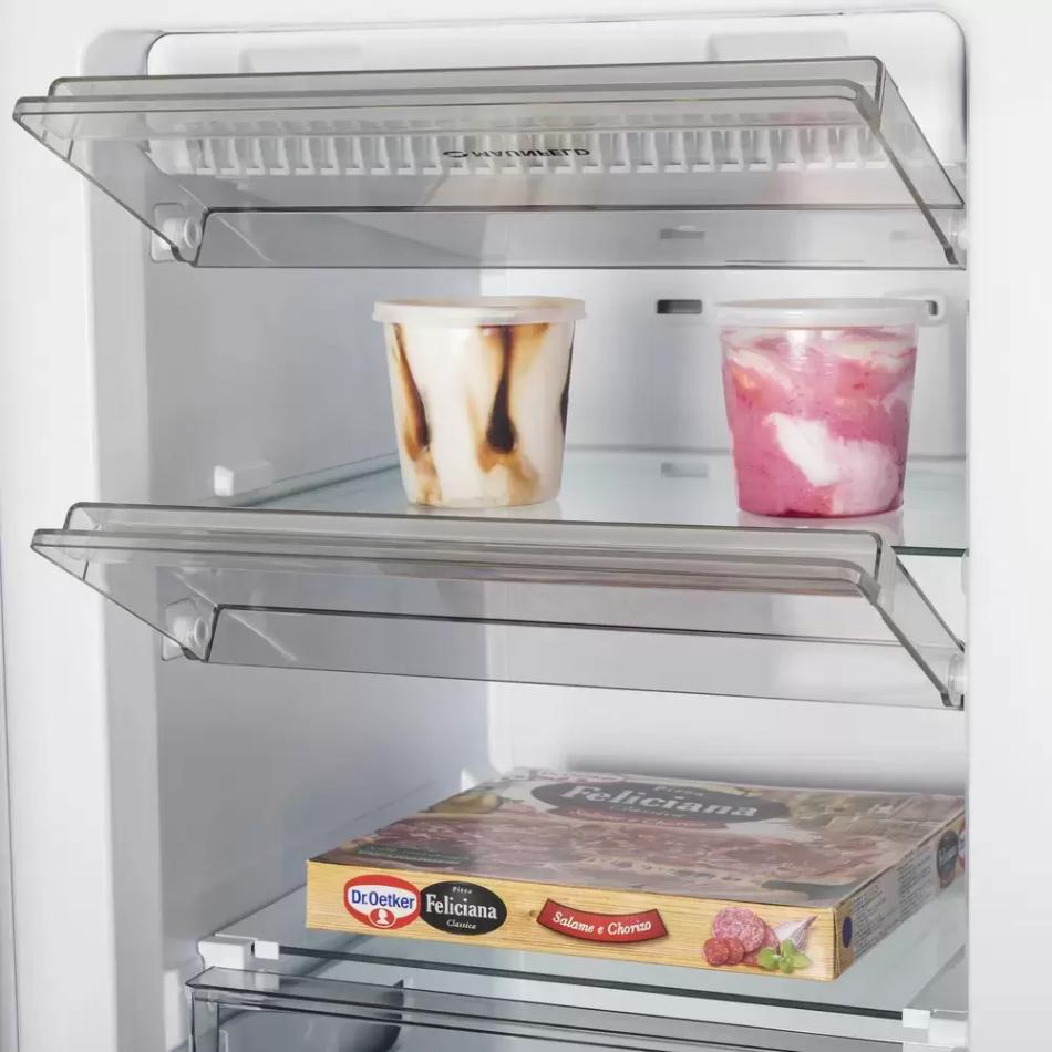 Вместительные контейнеры позволяют хранить достаточное количество овощей и фруктов. Для более длительного хранения и поддержания свежести овощей и фруктов разработаны специальные системы хранения. Среди них, например, зона свежести с увеличенной влажностью до 85% и температурой около 0 градусов. Это герметично закрывающийся ящик, часто на выдвижных роликах или направляющих, в котором имеется специальное задвижка, позволяющая регулировать влажность. Как известно, при более высокой влажности продукты с большим содержанием воды дольше остаются свежими.