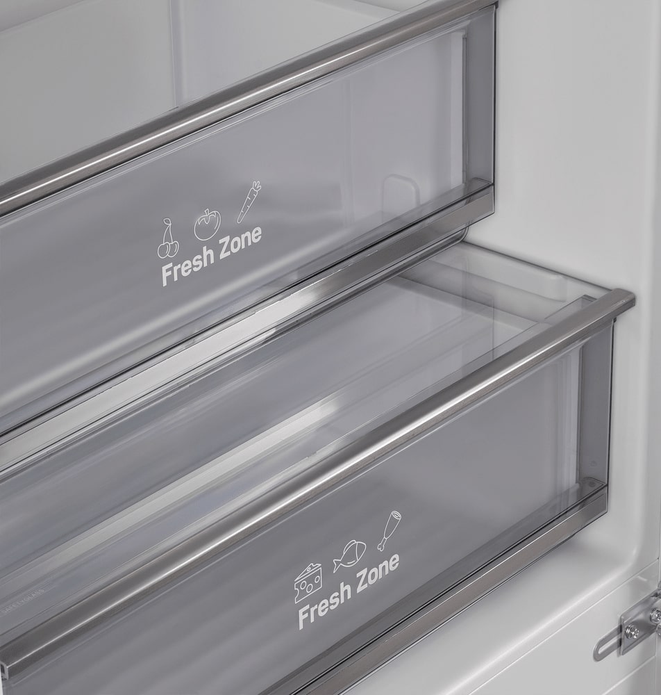 Трехкамерные модели выпускаются в нескольких вариантах. В некоторых случаях в качестве третьей камеры поступает так называемая зона свежести — отделение, где поддерживается температура около 0 градусов. В другом варианте подобные модели имеют морозильную камеру, состоящую из двух выдвижных ящиков.
