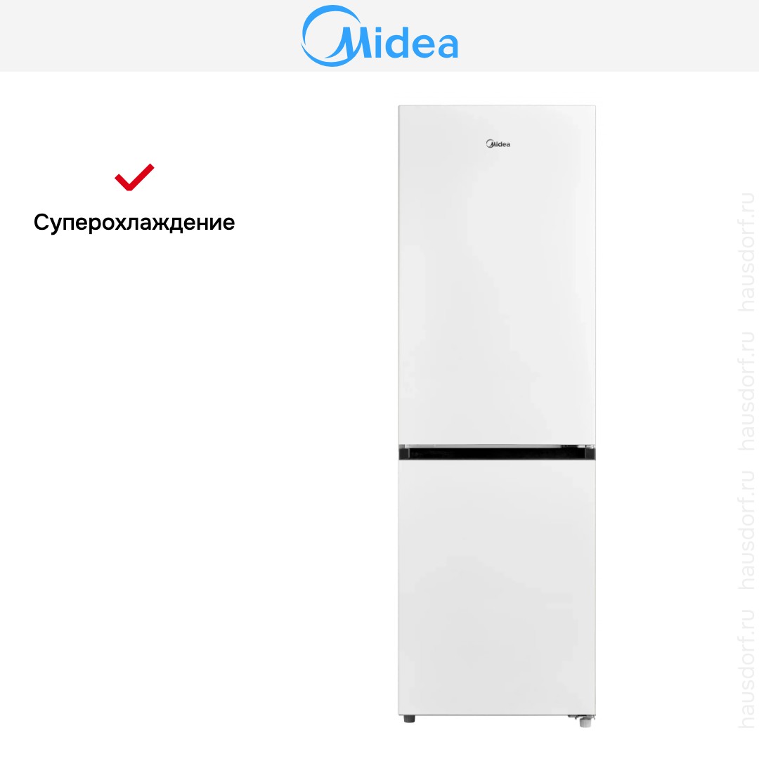 Холодильник Midea MDRB469MGF01I — элегантный белый отдельно стоящий агрегат с морозильной камерой внизу и лаконичным внешним видом. Его габариты 185×59.5×66 см делают устройство подходящим для стандартной кухни, где важен баланс вместимости и экономии пространства. Правая навеска дверей учитывает привычную планировку, а белый цвет корпуса вписывается в большинство интерьеров. Дизайн сочетает простые геометрические линии и гладкую поверхность, что облегчает уход и придаёт мебели аккуратный вид.