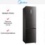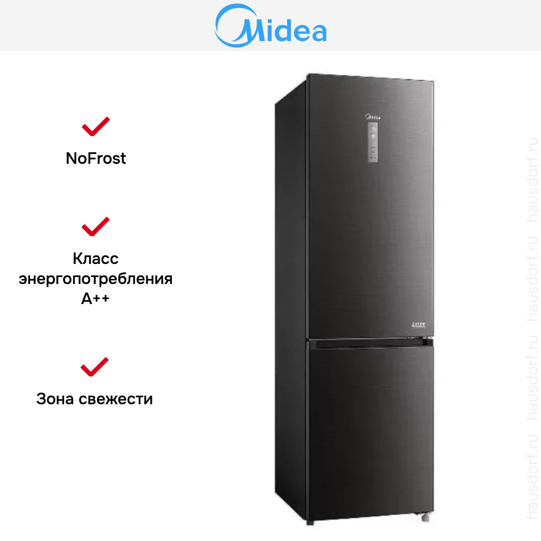 Холодильник Midea MDRB521MIE28OD — отдельно стоящая модель с нижней морозильной камерой и сдержанной чёрной отделкой, которая смотрится стильно в любой кухне. Компактный и высокий корпус с габаритами 201.8×59.5×66 см экономит место по глубине, но предлагает много полезного объёма. Чёрная поверхность придаёт интерьеру современный вид и легко сочетается с разными цветами мебели.