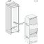 Прибор в этом случае помещается в колонну, шкаф или нишу, а на корпус этого шкафа или колонны крепится отдельная дверца на собственных петлях. Затем это дверца и дверь холодильника соединяются между собой при помощи специальных скользящих полозьев, или слайдеров. При открывания наружной дверцы внутренняя скользит вдоль нее на этих направляющих, так что происходит смещение их друг относительно друга. Дверца при этом открывается на угол не более 90 градусов.