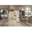 Внутреннее пространство продумано для удобного хранения: общий объем 273 л, из них холодильная камера 204 л, морозильная — 70 л, а зона свежести занимает 71 л. Четыре полки из безопасного стекла выдерживают повседневную нагрузку и легко переставляются благодаря системе Vario. Специальная поворотная стеклянная полка FlexiTray упрощает размещение высоких кастрюль и напитков. Есть вместительные ящики для овощей, на дверце тоже имеются полки, что помогает поддерживать порядок и экономить место.