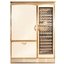 Дверца винного шкафа обычно делается прозрачной, защищенной от ультрафиолета, который может отрицательно повлиять на качество вина. Дополнительная защита позволяет снизить до минимума уровень вибрации. Кроме температуры, в такое деление можно регулировать уровень влажности. Деревянные полки служат для хранения бутылок в горизонтальном положении и могут выдвигаться на телескопических направляющих.