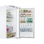 Встраиваемые холодильники монтируются в нишу или колонну. Передняя их часть закрывается декоративным мебельным фасадом и снаружи не отличается от дверцы обычного кухонного шкафа, так что их не нужно подбирать под интерьер помещения. Объем этих холодильников, как правило, несколько меньше, чем у отдельностоящих, так как при встраивании необходимо оставлять свободное пространство для вентиляции. Они отличаются меньшим уровнем шума, а также лучше держат холод и отличаются большей экономичностью из-за дополнительного слоя изоляции. Ассортимент этих холодильников не так велик, как у отдельно стоящих, установка более трудоемкая, а стоимость обычно несколько выше.