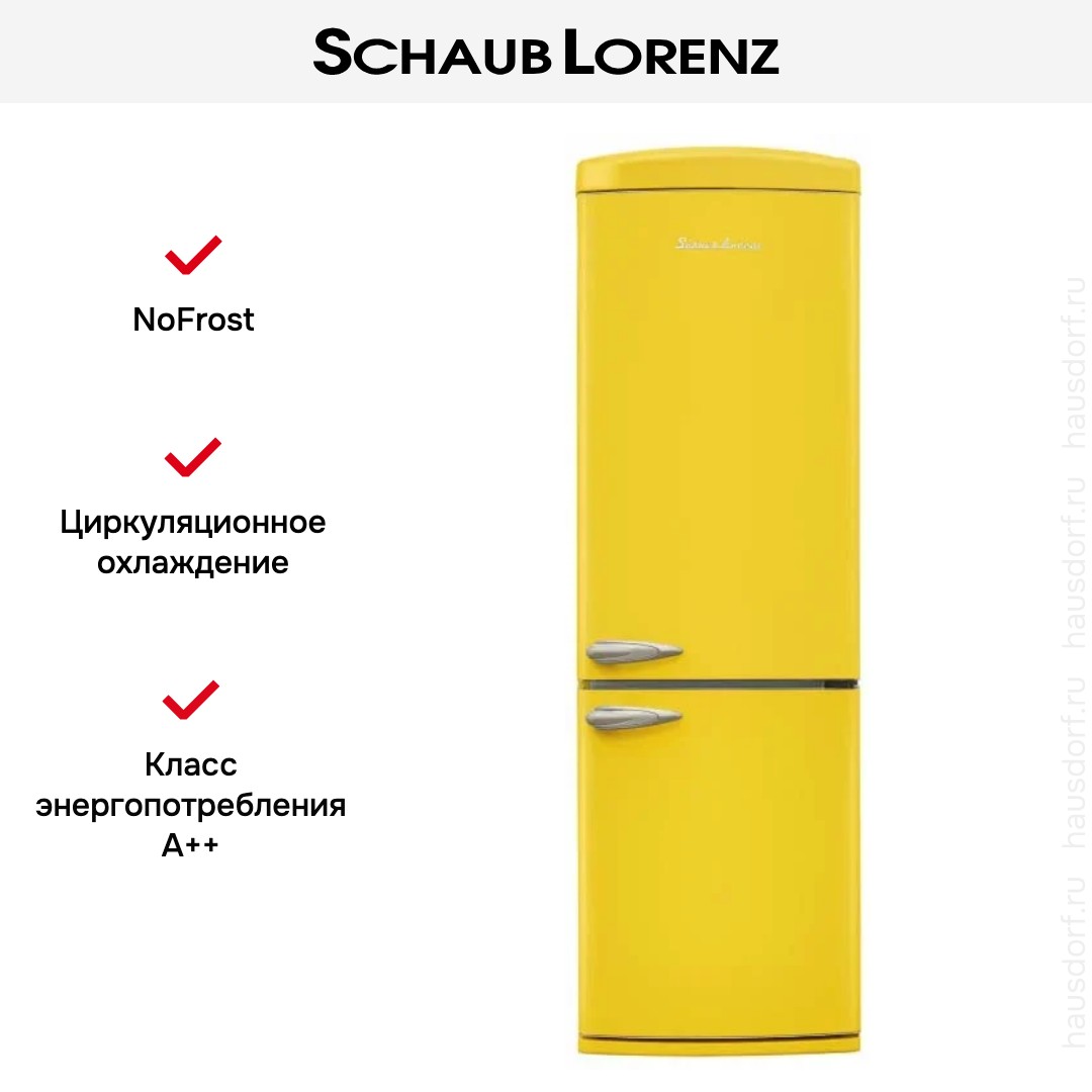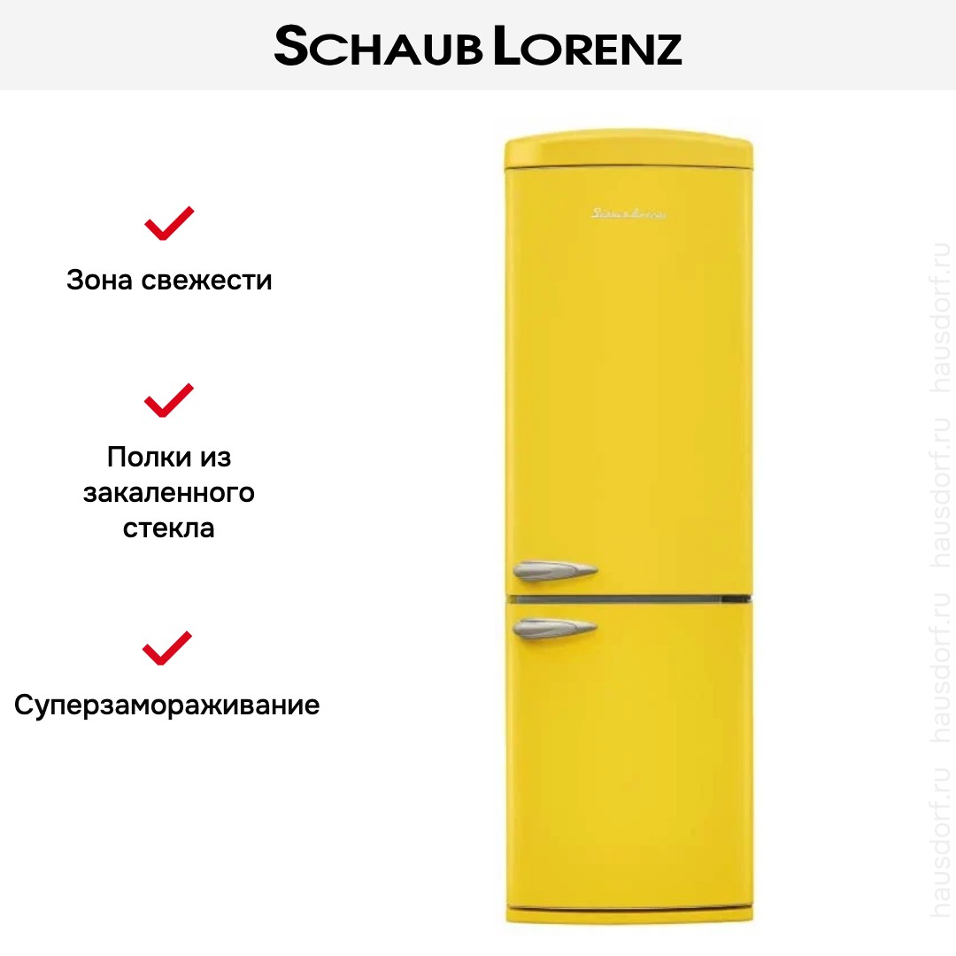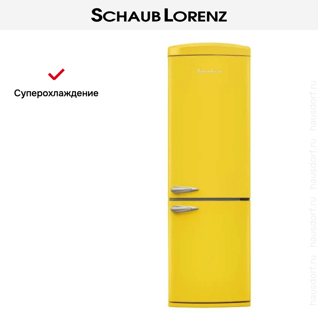 Холодильник Schaub Lorenz SLU-S335T4E — яркое и функциональное решение для кухни, объединяющее выразительный дизайн и продуманные технические решения. Его корпус выполнен из металла в насыщенном желтом цвете, что делает прибор отличным акцентом в интерьере. Габариты 190.1×60.5×68.1 см позволяют разместить агрегат в стандартной кухонной нише, а правый дверной упор обеспечивает удобство при планировке рабочей зоны.