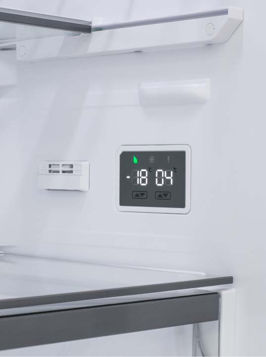 Цифровые дисплеи более простые — на них отображается температура в холодильной и морозильной камерах и выбранный режим — например, суперзамораживание, суперохлаждение, отпускной режим. Сюда же выводятся сообщения об ошибках. Текстовый дисплей дает пользователю больше возможностей и позволяет работать с меню, выбирая в нем те или иные опции.
