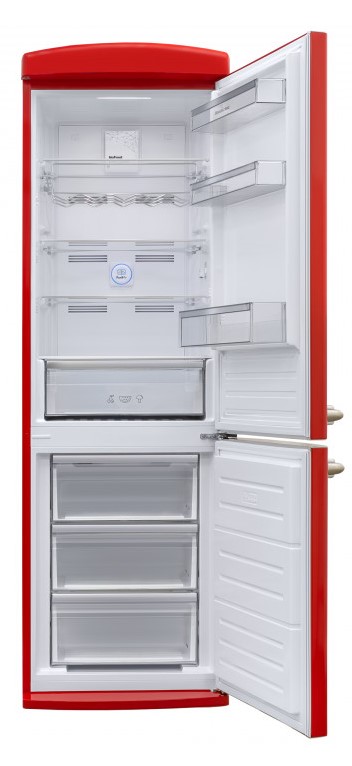 No Frost (Total No Frost, Frost Free): вентилятор обеспечивает циркуляцию охлажденного воздуха, благодаря чему лед не нарастает на стенке, а концентрируется только на скрытом внутри холодильника испарителе. Талая вода собирается в специальной емкости и испаряется. Такой холодильник не нужно размораживать – это экономит время и позволяет не останавливать прибор. Благодаря этим плюсам в современных моделях No Frost – самая распространенная система.