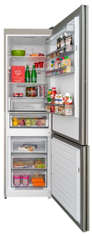 Внутреннее наполнение холодильной и морозильной камер включает многочисленные и разнообразные полки, ящики, контейнеры. Все они используются для более удобного и рационального размещения продуктов, которое обеспечивает хороший обзор содержимого холодильника и быстрый поиск.