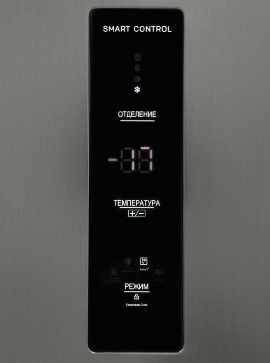 Система управления холодильником позволяет самостоятельно выбирать температуру охлаждения каждой камеры, задавать дополнительные параметры, контролировать работу прибора. П
