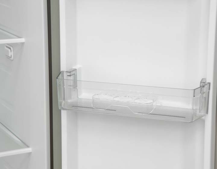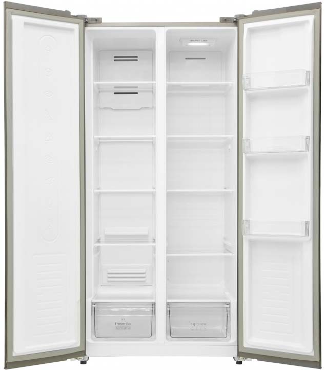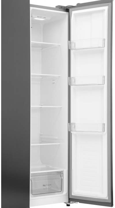 Данная модель — отдельностоящая, поэтому нужно тщательно подобрать место для ее размещения. Холодильник Side-by-Side с необычным расположением камер — сбоку друг от друга — позволяет увеличить объем продуктов для хранения. Такой вариант подходит обладателям просторной кухни, большим семьям, людям, которые запасают продукты и готовят впрок. Количество камер: 2.